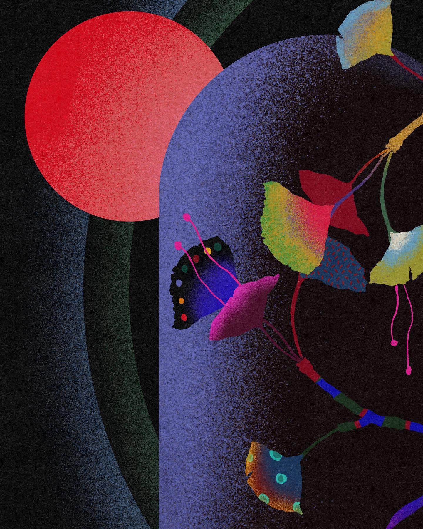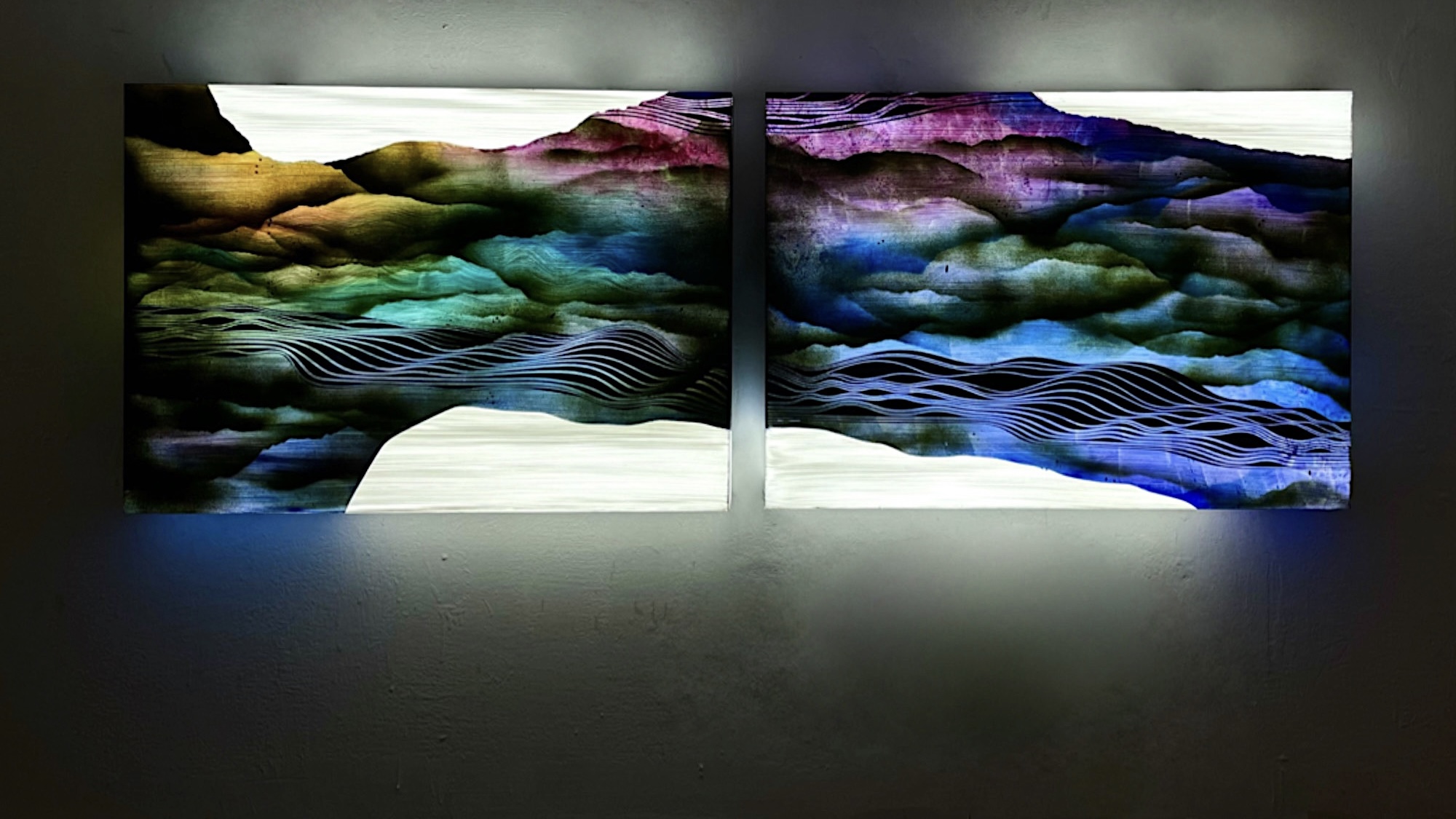 作品多被國內外美術館、私人藏家收藏的陶文岳老師,擅長抽象來表達內心對世界的反饋,這次展出的作品《馥蘭朵烏來生之祭》則是以複合媒材來傳遞本次的療癒主題。