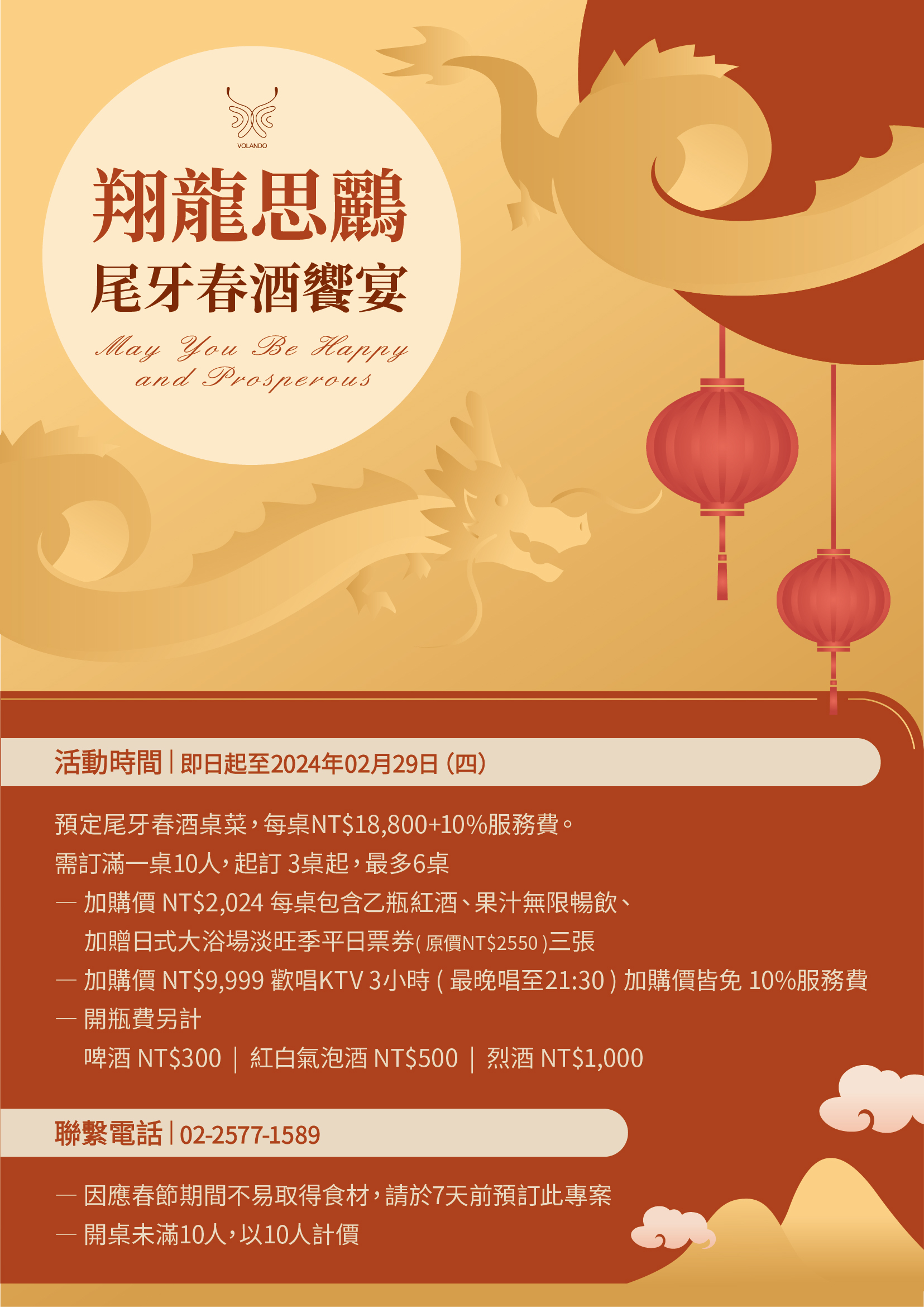 預定尾牙春酒桌菜,每桌 NT$18,800+10%服務費。